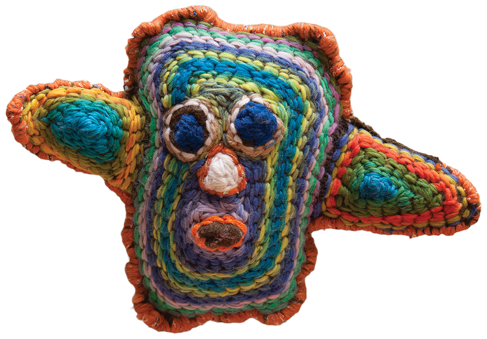 Marlene has sewn many owl heads using recycled blankets. If you look closely at the faces, they all make a different face and each one tells its own story.