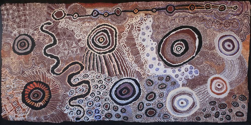 This is the creation story for Ilpili about the Two Sister creation beings. The women were hiding in Tjukulas (rockholes) and one Wati (man) was searching for them but he could not see them. The younger sister was pregnant. Her older sister was looking after her. As they hid in a cave at the base of the hill the man climbed up high to look for them called out "Yaltji, minyma kutjara?"(where are you two women)?