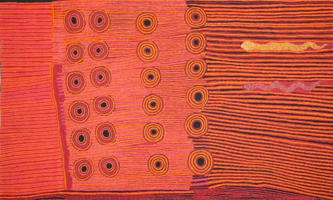 Tjulpu palumpa ngura apu kulpi (these birds have their home in small caves in the rocky hills). Tjulpu ini ipuru, tjulpu mutu- mutu ( the name of these birds is spinifex pigeon and they are small birds). Apu Kunamata pulka tjuta (at Kunamata there are many big rocky hills). Kuniya wati munu kuniya minyma ananyi palumpa ngura tali.(one man and women python are going to there home in the sandhills) Ngayuku ngura Kunamata (my home is at Kunamata).