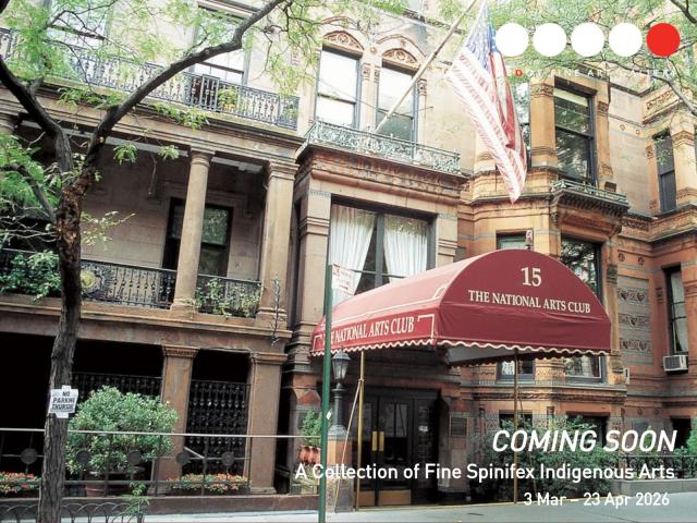 Hosted at the historic National Arts Club in Gramercy Park, this presentation offers New York audiences a rare opportunity to experience the profound depth and spiritual power of contemporary Australian Indigenous art from the remote community of Tjuntjuntjara in Western Australia's Great Victoria Desert.