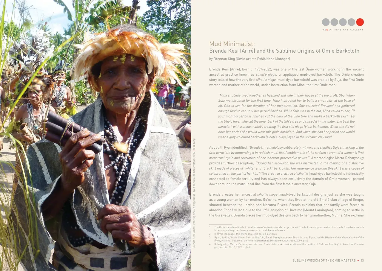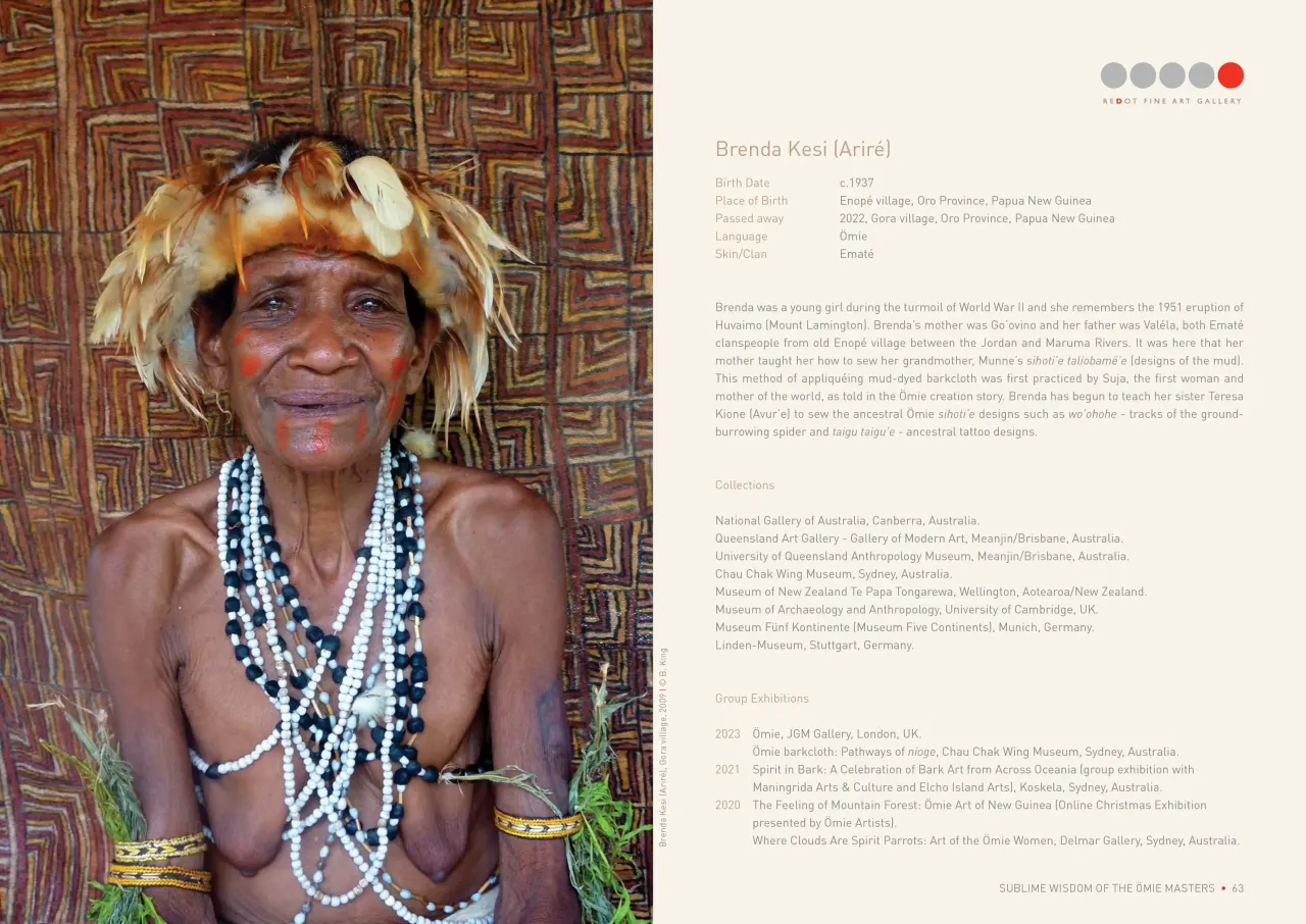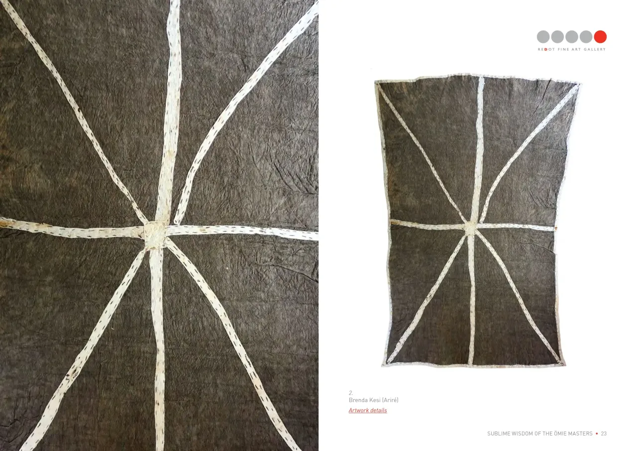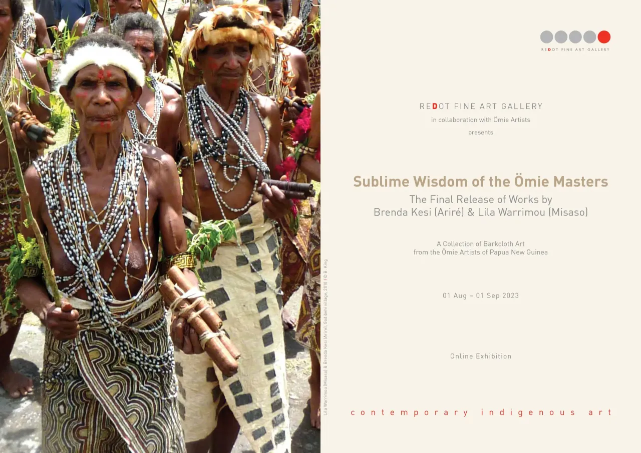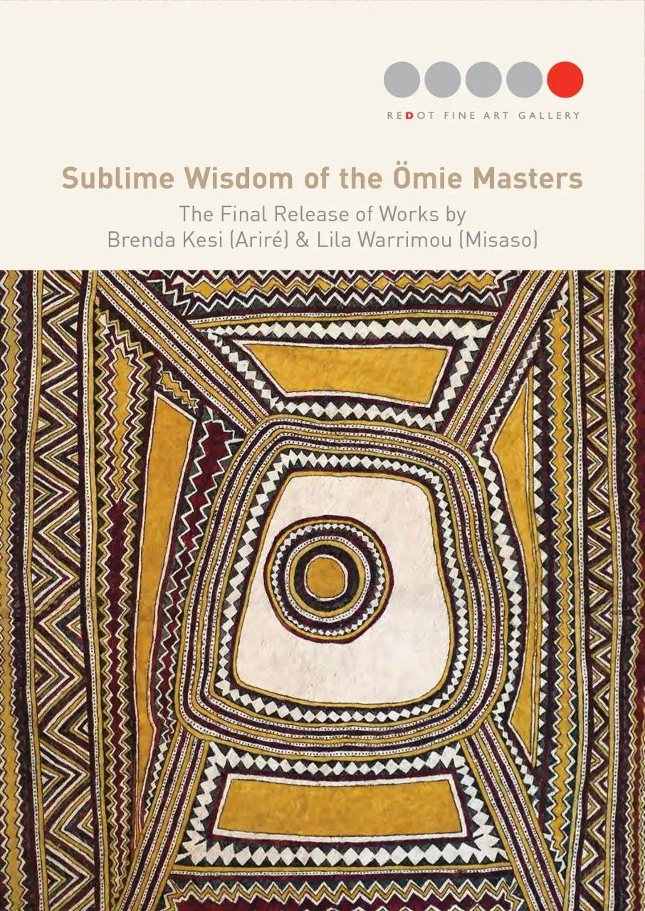 ReDot Fine Art Gallery is honoured to present our latest exhibition, ‘Sublime Wisdom of the Ömie Masters: The Final Release of Works by Brenda Kesi (Ariré) & Lila Warrimou (Misaso)’. This exhibition follows on from the momentous show, ‘The Art of Isawdi (Fate Savari)’, which we presented in 2021/2022, in Singapore and then to critical acclaim at Delmar Gallery in Sydney. This new exhibition features six rare and previously unreleased mud-dyed barkcloth works by Brenda Kesi (Ariré) [born circa 1937], along with twelve similarly unseen, barkcloth works by Lila Warrimou (Misaso) [born circa 1944], who is the Paramount Chief of Ömie women.