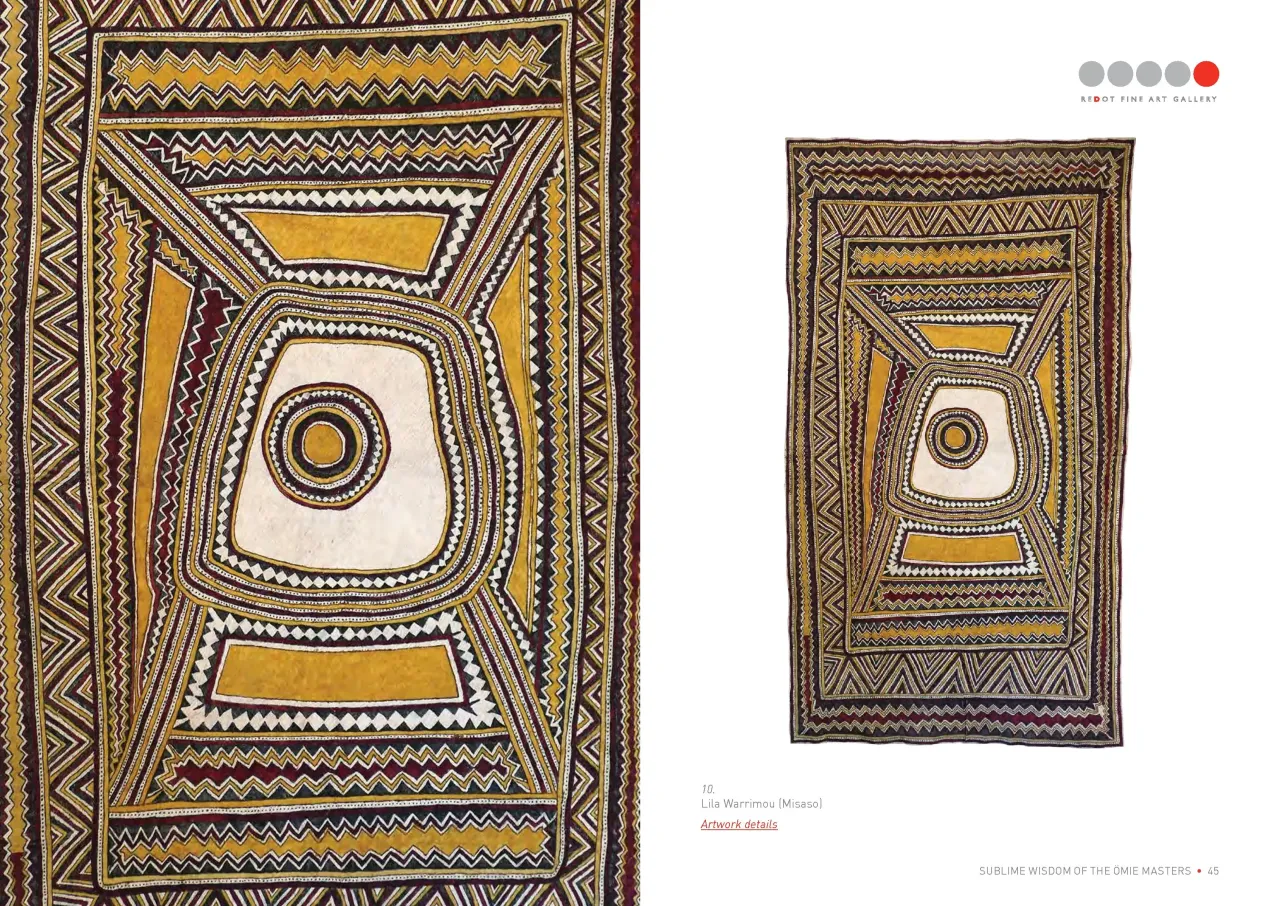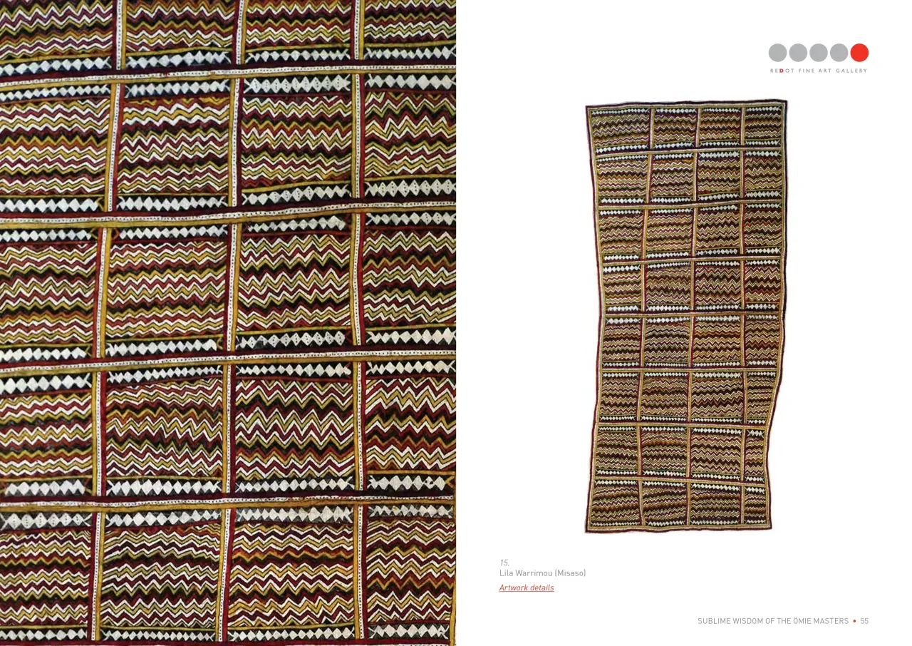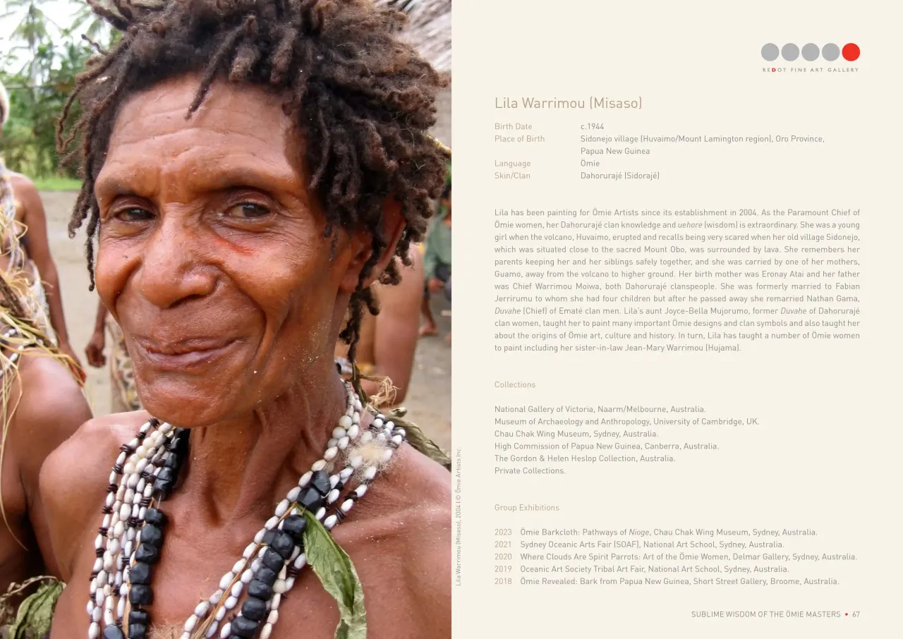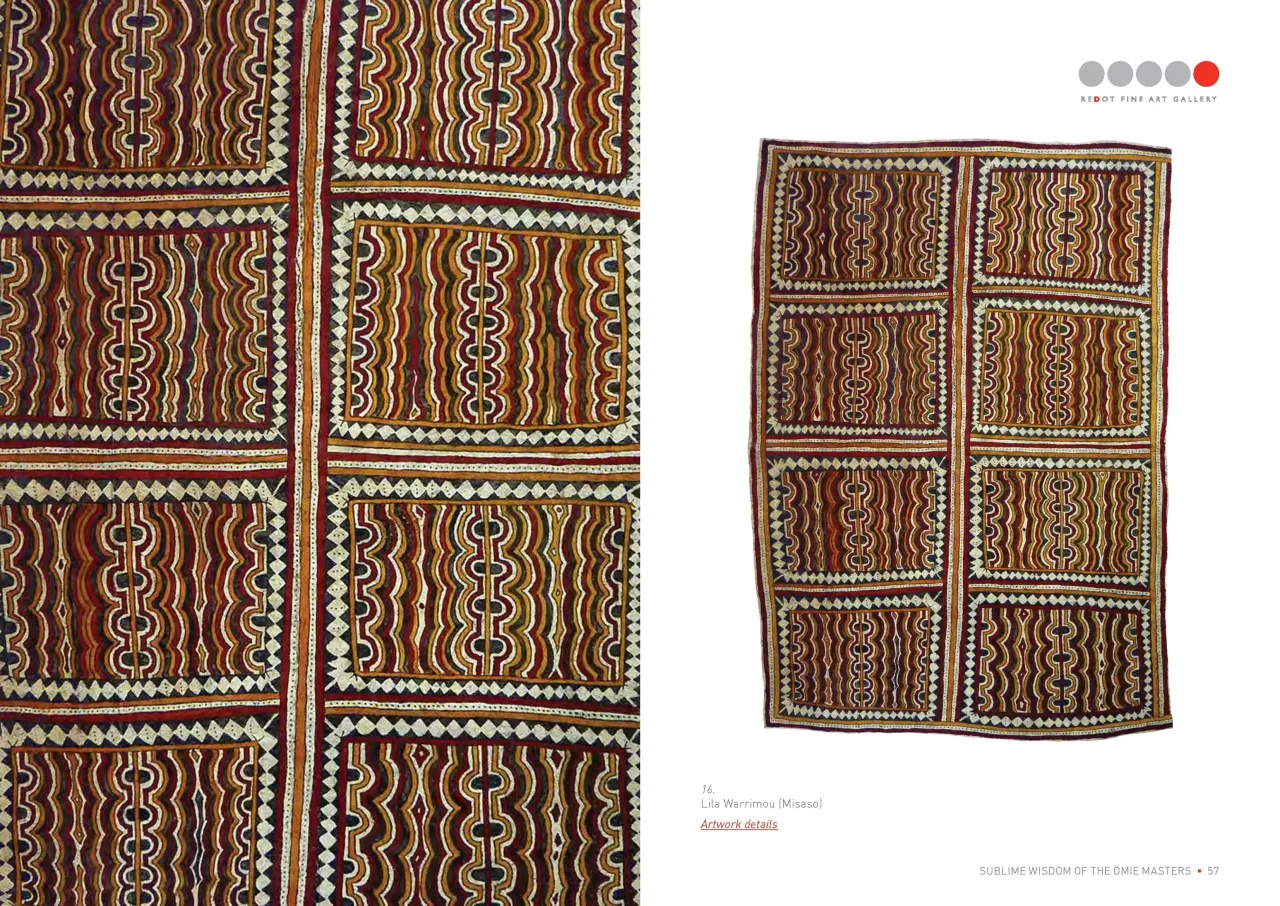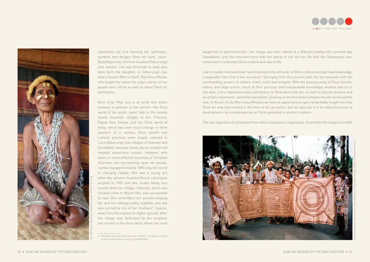 ReDot Fine Art Gallery is honoured to present our latest exhibition, ‘Sublime Wisdom of the Ömie Masters: The Final Release of Works by Brenda Kesi (Ariré) & Lila Warrimou (Misaso)’. This exhibition follows on from the momentous show, ‘The Art of Isawdi (Fate Savari)’, which we presented in 2021/2022, in Singapore and then to critical acclaim at Delmar Gallery in Sydney. This new exhibition features six rare and previously unreleased mud-dyed barkcloth works by Brenda Kesi (Ariré) [born circa 1937], along with twelve similarly unseen, barkcloth works by Lila Warrimou (Misaso) [born circa 1944], who is the Paramount Chief of Ömie women.