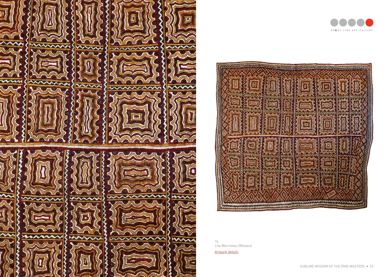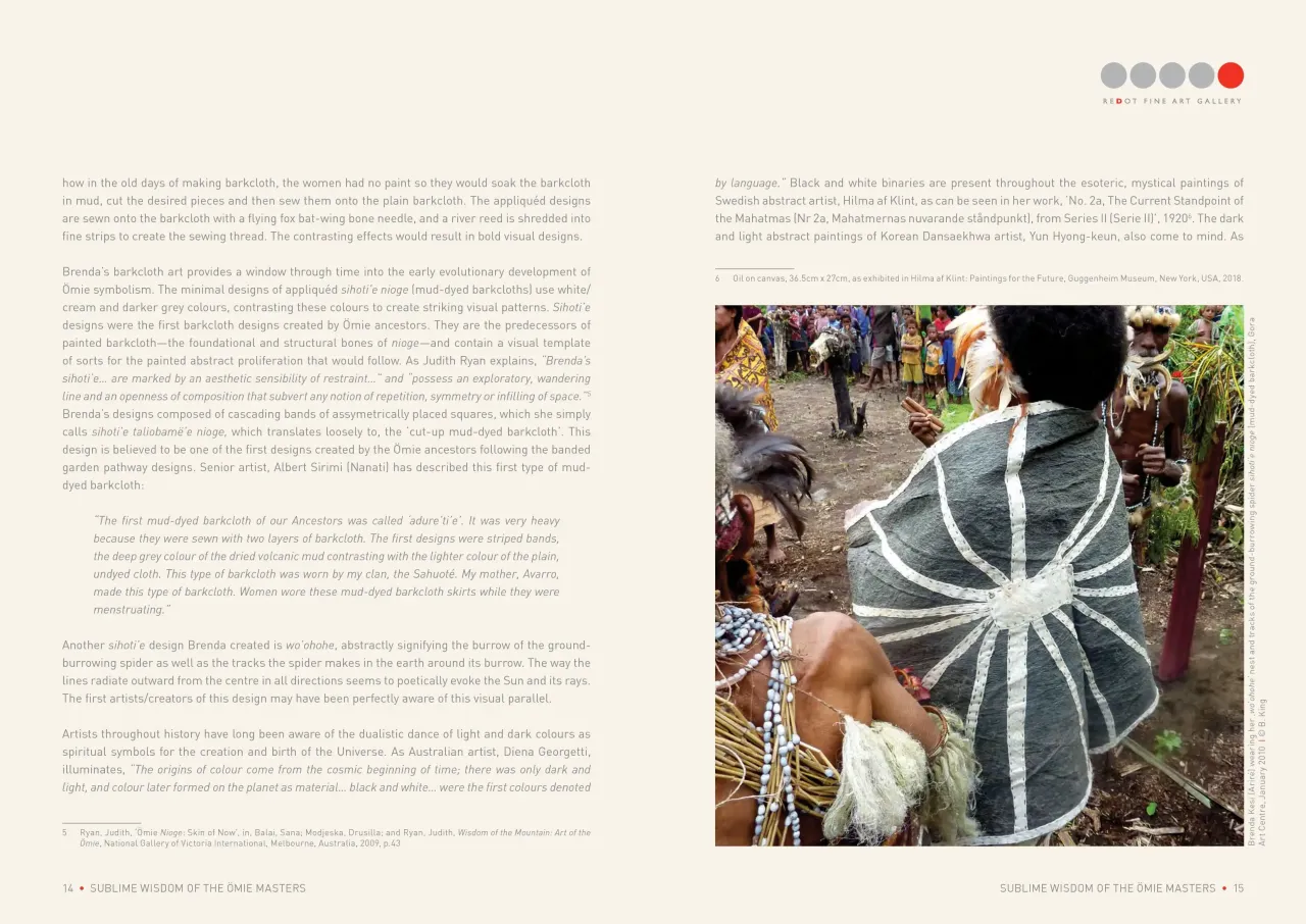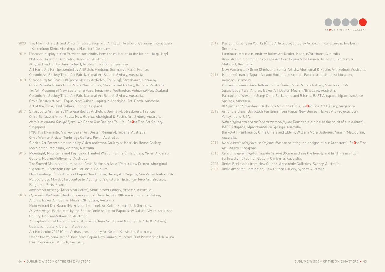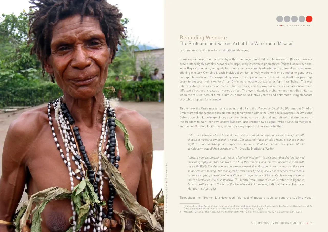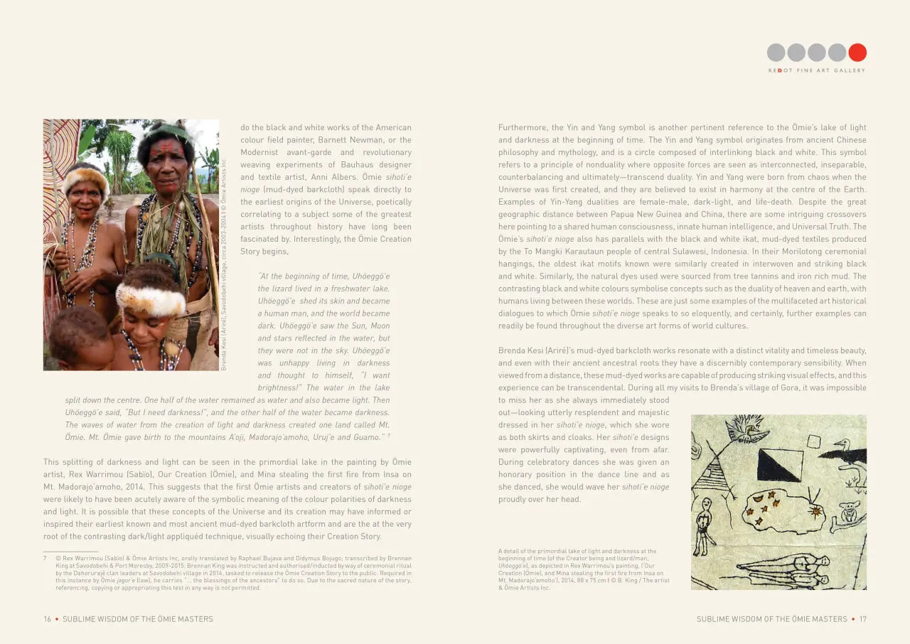 ReDot Fine Art Gallery is honoured to present our latest exhibition, ‘Sublime Wisdom of the Ömie Masters: The Final Release of Works by Brenda Kesi (Ariré) & Lila Warrimou (Misaso)’. This exhibition follows on from the momentous show, ‘The Art of Isawdi (Fate Savari)’, which we presented in 2021/2022, in Singapore and then to critical acclaim at Delmar Gallery in Sydney. This new exhibition features six rare and previously unreleased mud-dyed barkcloth works by Brenda Kesi (Ariré) [born circa 1937], along with twelve similarly unseen, barkcloth works by Lila Warrimou (Misaso) [born circa 1944], who is the Paramount Chief of Ömie women.