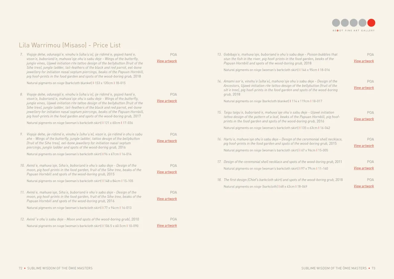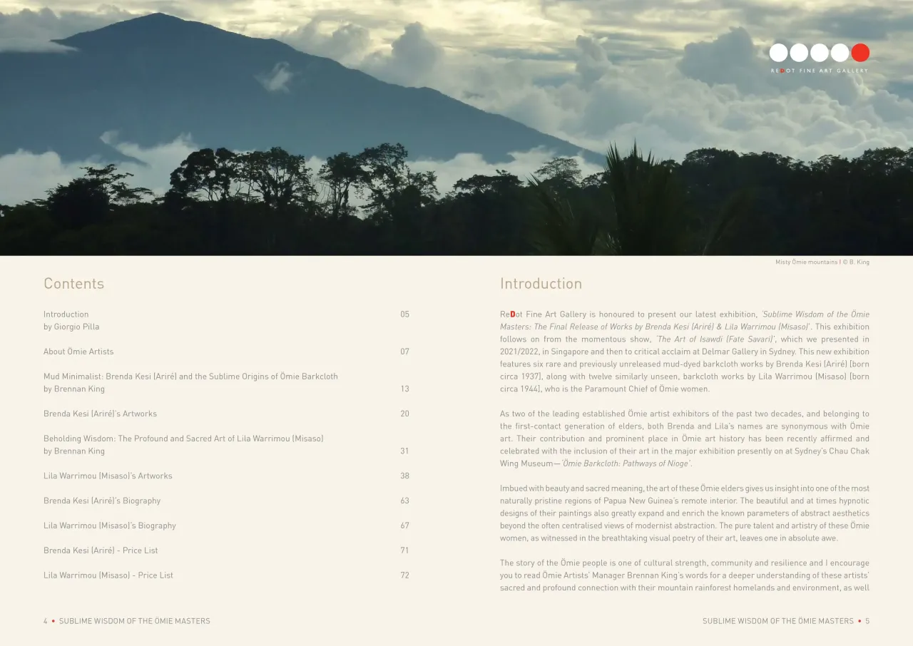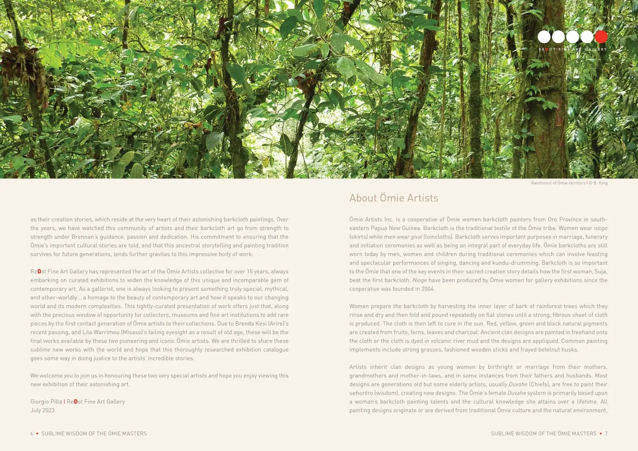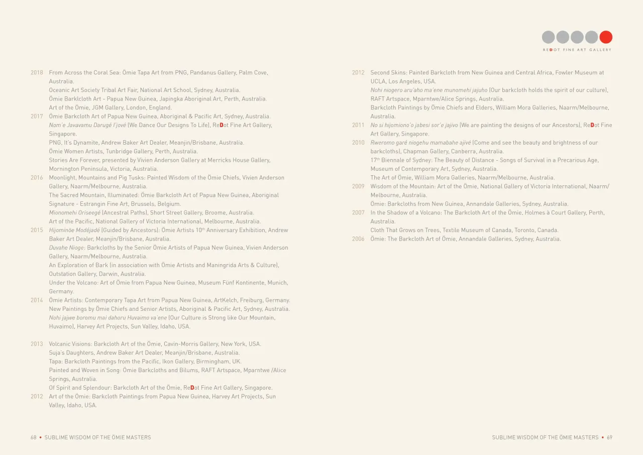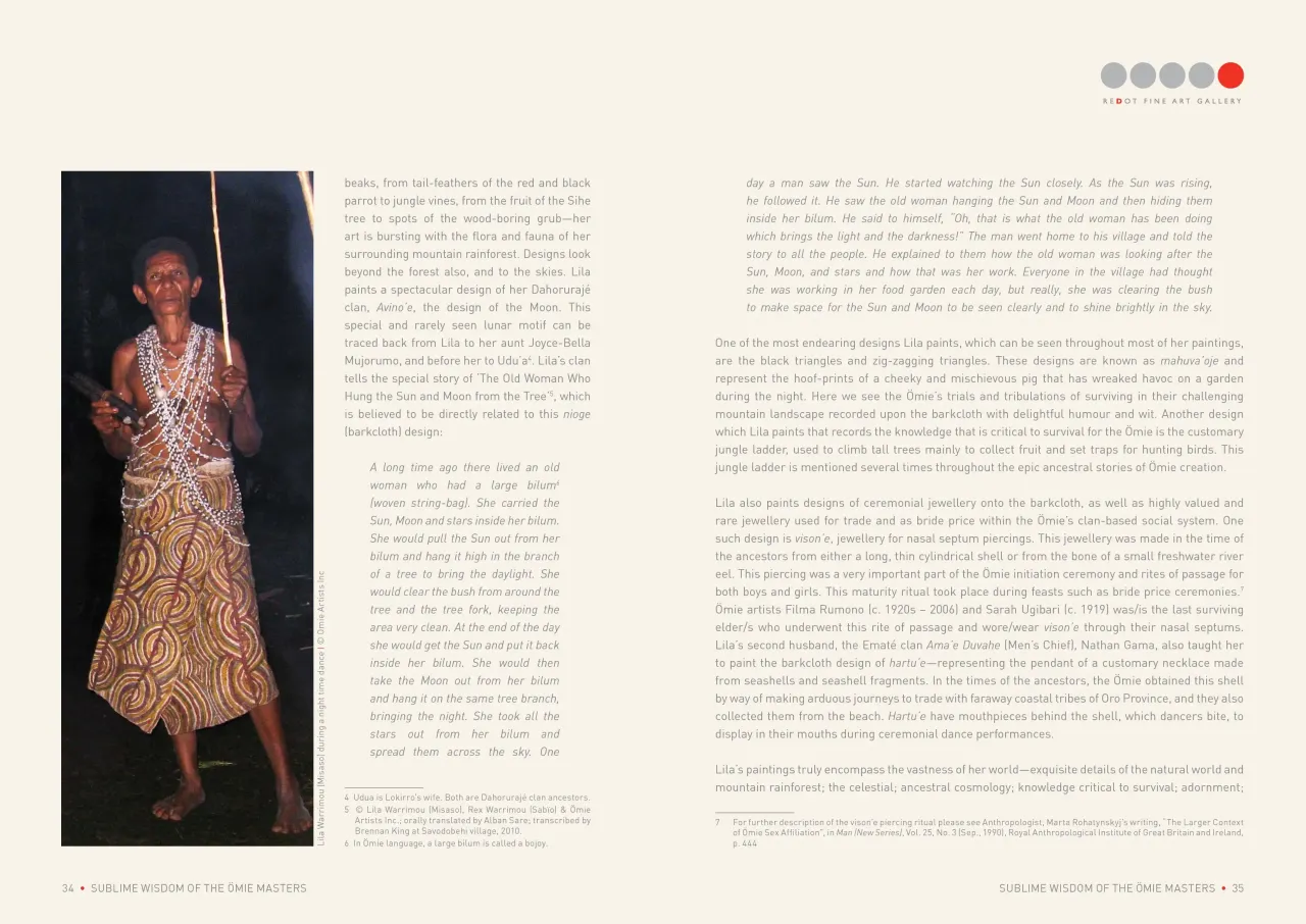 ReDot Fine Art Gallery is honoured to present our latest exhibition, ‘Sublime Wisdom of the Ömie Masters: The Final Release of Works by Brenda Kesi (Ariré) & Lila Warrimou (Misaso)’. This exhibition follows on from the momentous show, ‘The Art of Isawdi (Fate Savari)’, which we presented in 2021/2022, in Singapore and then to critical acclaim at Delmar Gallery in Sydney. This new exhibition features six rare and previously unreleased mud-dyed barkcloth works by Brenda Kesi (Ariré) [born circa 1937], along with twelve similarly unseen, barkcloth works by Lila Warrimou (Misaso) [born circa 1944], who is the Paramount Chief of Ömie women.