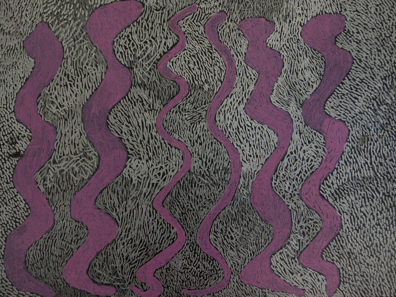 This is the sandhill country, Jilji, which goes on and on. In between the Jilji, that is called Bila, flat country. The Jilji can be close, or further apart. The land may be burnt or with the green grass that comes after. Sometimes there are flowers, Putipula, or different trees and grasses, as well as bushtucker.