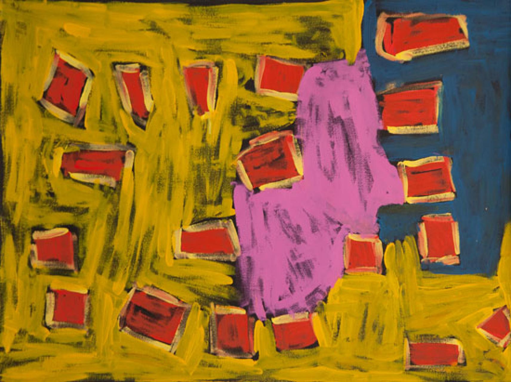 This Dreaming is about two snakes who were laying down. They were sleeping, and after which, the two snakes went to karrkurinkitja with the two men were looking after the two snakes. They went north and one of the men began to sneeze and the other man went to look for something. And the other men were coming behind him and the two snakes went straight but they did not go into the hole, they went past the hole. But Kurningka went looking, the clouds were coming towards them. The snakes were travelling and the water was rising, and the lady snake went in the ant’s hole and the other one was outside and Kurningka was saying, ‘water is coming closer’ the other snake was big, too big for the hole, and the other one went in. The Kurningka cut the snake and a lot of fat came out.